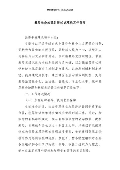 【七哥公文】2025年:【七哥公文】基层社会治理创新试点建设工作总结+更多免费公文+VX:QiGeGongWen2024+更多免费公文+VX:QiGeGongWen2024