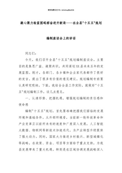 【七哥公文】2025年:【七哥公文】凝心聚力绘蓝图砥砺奋进开新局——在全县“十五五”规划编制座谈会上的讲话+更多免费公文+VX:QiGeGongWen2024+更多免费公文+VX:QiGeGongWen2024