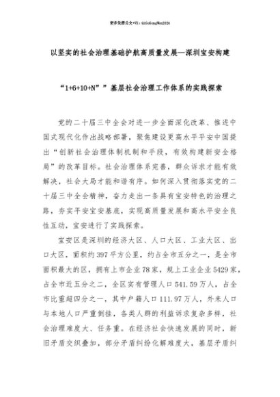 【七哥公文】2025年:【七哥公文】以坚实的社会治理基础护航高质量发展—深圳宝安构建“1+6+10+N””基层社会治理工作体系的实践探索+更多免费公文+VX:QiGeGongWen2024+更多免费公文+VX:QiGeGongWen2024