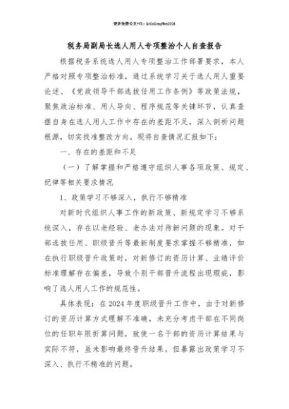 【七哥公文】2025年:【七哥公文】税务局副局长选人用人专项整治个人自查报告+更多免费公文+VX:QiGeGongWen2024+更多免费公文+VX:QiGeGongWen2024