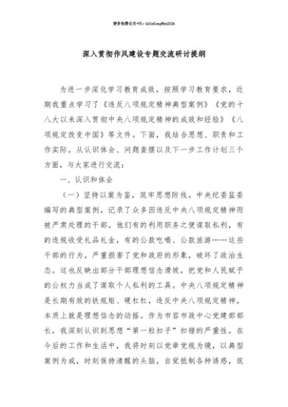 【七哥公文】2025年:【七哥公文】深入贯彻作风建设专题交流研讨提纲+更多免费公文+VX:QiGeGongWen2024+更多免费公文+VX:QiGeGongWen2024