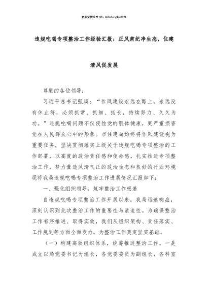 【七哥公文】2025年:【七哥公文】违规吃喝专项整治工作经验汇报:正风肃纪净生态,住建清风促发展+更多免费公文+VX:QiGeGongWen2024+更多免费公文+VX:QiGeGongWen2024