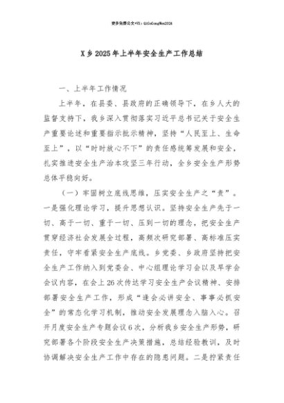 【七哥公文】2025年:【七哥公文】X乡2025年上半年安全生产工作总结+更多免费公文+VX:QiGeGongWen2024+更多免费公文+VX:QiGeGongWen2024