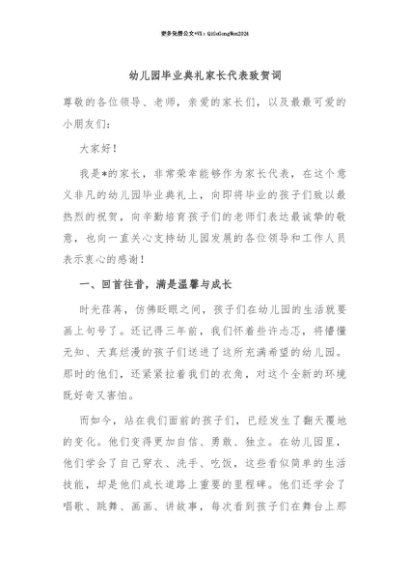 【七哥公文】2025年:【七哥公文】幼儿园毕业典礼家长代表致贺词+更多免费公文+VX:QiGeGongWen2024+更多免费公文+VX:QiGeGongWen2024