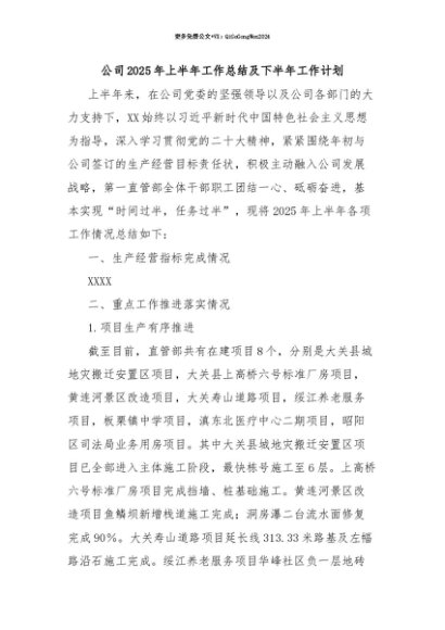 【七哥公文】2025年:【七哥公文】公司2025年上半年工作总结及下半年工作计划+更多免费公文+VX:QiGeGongWen2024+更多免费公文+VX:QiGeGongWen2024
