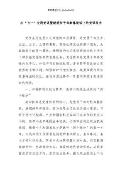 【七哥公文】2025年:【七哥公文】在“七一”专题党课暨新提任干部集体谈话上的党课报告+更多免费公文+VX:QiGeGongWen2024+更多免费公文+VX:QiGeGongWen2024