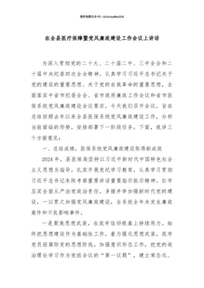 【七哥公文】2025年:【七哥公文】在全县医疗保障暨党风廉政建设工作会议上讲话+更多免费公文+VX:QiGeGongWen2024+更多免费公文+VX:QiGeGongWen2024