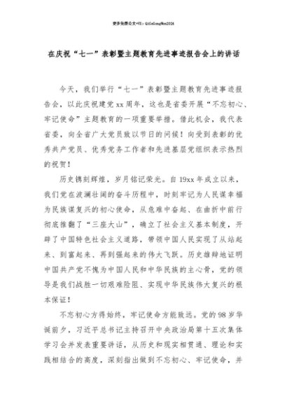 【七哥公文】2025年:【七哥公文】在庆祝“七一”表彰暨主题教育先进事迹报告会上的讲话+更多免费公文+VX:QiGeGongWen2024+更多免费公文+VX:QiGeGongWen2024