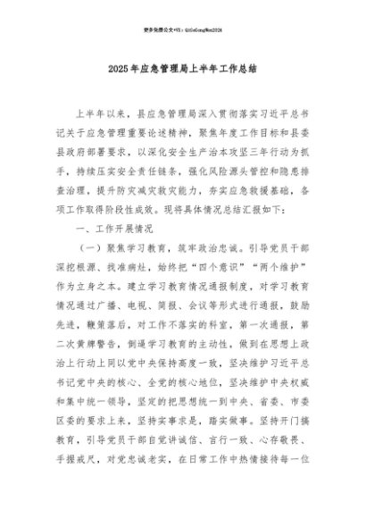 【七哥公文】2025年:【七哥公文】2025年应急管理局上半年工作总结+更多免费公文+VX:QiGeGongWen2024+更多免费公文+VX:QiGeGongWen2024