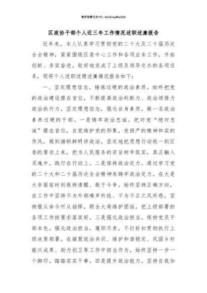 【七哥公文】2025年:【七哥公文】区政协干部个人近三年工作情况述职述廉报告+更多免费公文+VX:QiGeGongWen2024+更多免费公文+VX:QiGeGongWen2024