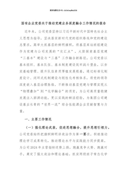 【七哥公文】2025年:【七哥公文】国有企业党委关于推动党建业务深度融合工作情况的报告+更多免费公文+VX:QiGeGongWen2024+更多免费公文+VX:QiGeGongWen2024