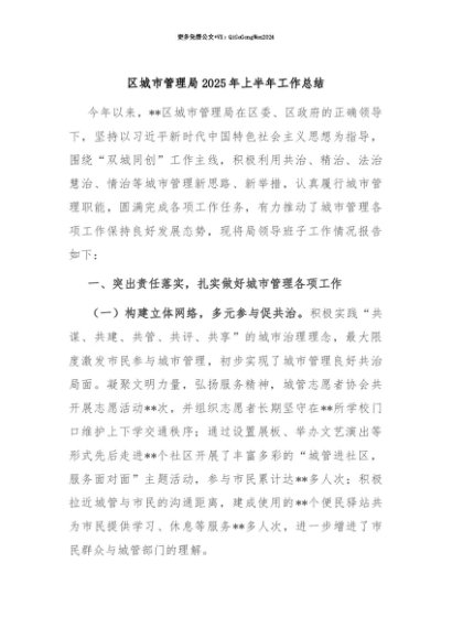【七哥公文】2025年:【七哥公文】区城市管理局2025年上半年工作总结+更多免费公文+VX:QiGeGongWen2024+更多免费公文+VX:QiGeGongWen2024