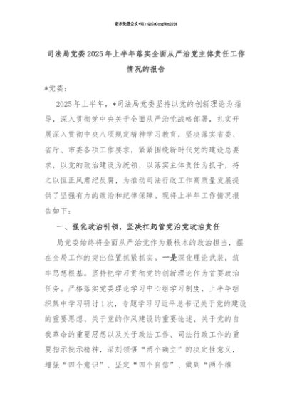 【七哥公文】2025年:【七哥公文】司法局党委2025年上半年落实全面从严治党主体责任工作情况的报告+更多免费公文+VX:QiGeGongWen2024+更多免费公文+VX:QiGeGongWen2024