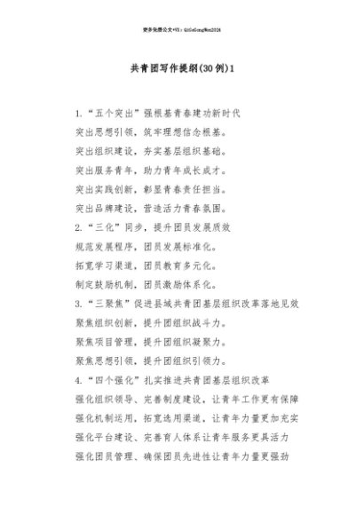 【七哥公文】2025年:【七哥公文】(30例)共青团写作提纲1+更多免费公文+VX:QiGeGongWen2024+更多免费公文+VX:QiGeGongWen2024