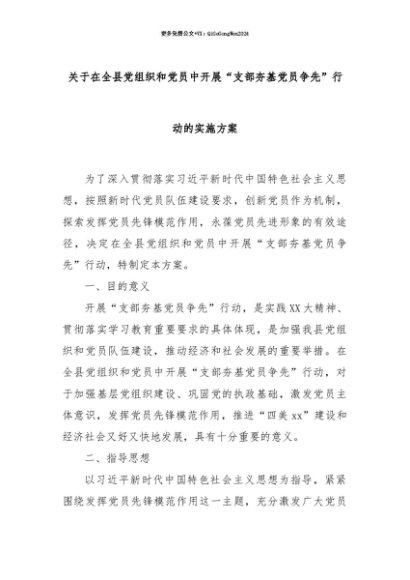 【七哥公文】2025年:【七哥公文】关于在全县党组织和党员中开展“支部夯基党员争先”行动的实施方案+更多免费公文+VX:QiGeGongWen2024+更多免费公文+VX:QiGeGongWen2024