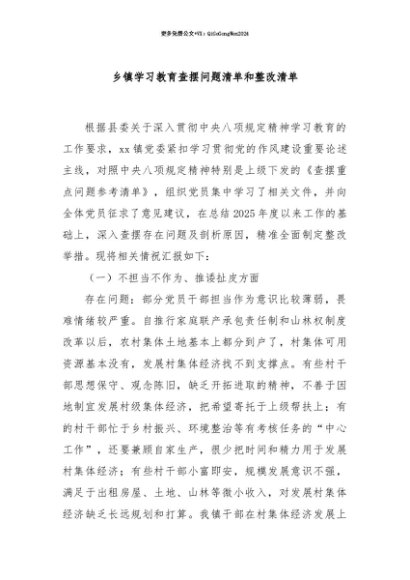 【七哥公文】2025年:【七哥公文】乡镇学习教育查摆问题清单和整改清单+更多免费公文+VX:QiGeGongWen2024+更多免费公文+VX:QiGeGongWen2024