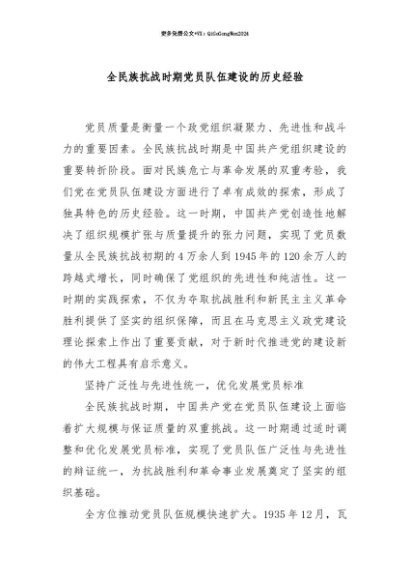 【七哥公文】2025年:【七哥公文】全民族抗战时期党员队伍建设的历史经验+更多免费公文+VX:QiGeGongWen2024+更多免费公文+VX:QiGeGongWen2024
