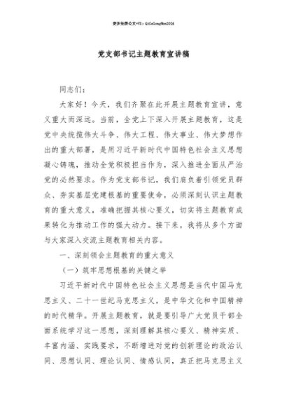 【七哥公文】2025年:【七哥公文】党支部书记主题教育宣讲稿+更多免费公文+VX:QiGeGongWen2024+更多免费公文+VX:QiGeGongWen2024