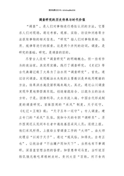 【七哥公文】2025年:【七哥公文】调查研究的历史传承与时代价值+更多免费公文+VX:QiGeGongWen2024+更多免费公文+VX:QiGeGongWen2024
