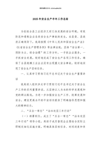 【七哥公文】2025年:【七哥公文】2025年安全生产半年工作总结+更多免费公文+VX:QiGeGongWen2024+更多免费公文+VX:QiGeGongWen2024