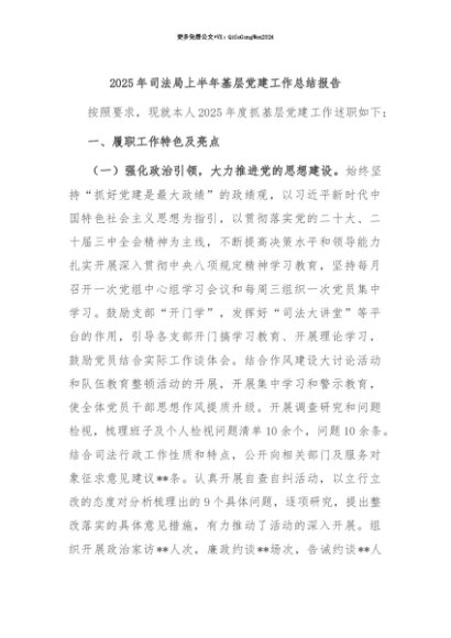 【七哥公文】2025年:【七哥公文】2025年司法局上半年基层党建工作总结报告+更多免费公文+VX:QiGeGongWen2024+更多免费公文+VX:QiGeGongWen2024