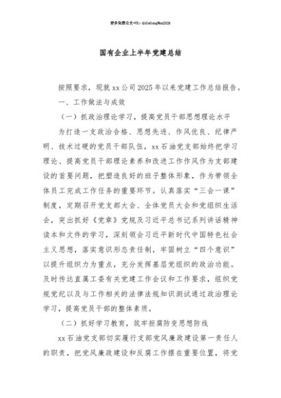 【七哥公文】2025年:【七哥公文】国有企业上半年党建总结+更多免费公文+VX:QiGeGongWen2024+更多免费公文+VX:QiGeGongWen2024
