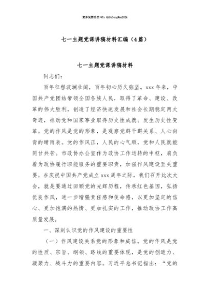 【七哥公文】2025年:【七哥公文】(4篇)七一主题党课讲稿材料汇编+更多免费公文+VX:QiGeGongWen2024+更多免费公文+VX:QiGeGongWen2024