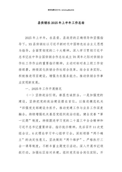 【七哥公文】2025年:【七哥公文】县供销社2025年上半年工作总结+更多免费公文+VX:QiGeGongWen2024+更多免费公文+VX:QiGeGongWen2024