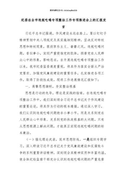【七哥公文】2025年:【七哥公文】纪委在全市违规吃喝专项整治工作专项推进会上的汇报发言+更多免费公文+VX:QiGeGongWen2024+更多免费公文+VX:QiGeGongWen2024