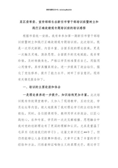 【七哥公文】2025年:【七哥公文】某区委常委、宣传部部长在新任市管干部培训班暨树立和践行正确政绩观专题培训班的培训感悟+更多免费公文+VX:QiGeGongWen2024+更多免费公文+VX:QiGeGongWen2024