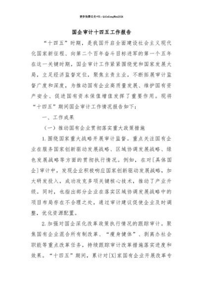 【七哥公文】2025年:【七哥公文】国企审计十四五工作报告+更多免费公文+VX:QiGeGongWen2024+更多免费公文+VX:QiGeGongWen2024