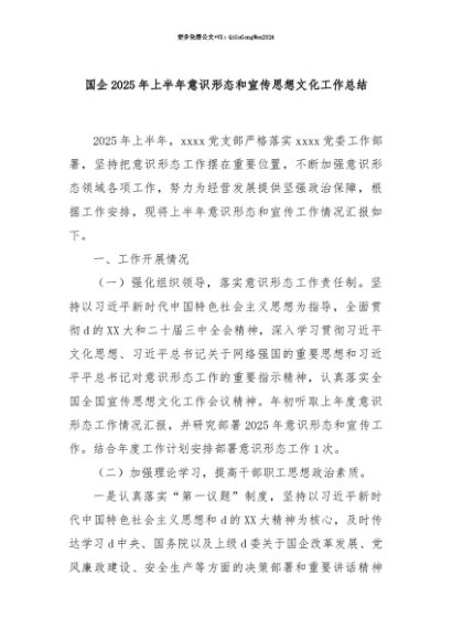 【七哥公文】2025年:【七哥公文】国企2025年上半年意识形态和宣传思想文化工作总结+更多免费公文+VX:QiGeGongWen2024+更多免费公文+VX:QiGeGongWen2024