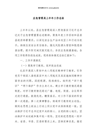 【七哥公文】2025年:【七哥公文】应急管理局上半年工作总结+更多免费公文+VX:QiGeGongWen2024+更多免费公文+VX:QiGeGongWen2024