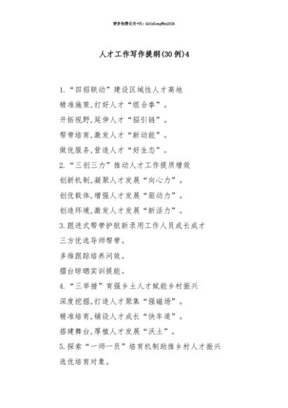 【七哥公文】2025年:【七哥公文】(30例)人才工作写作提纲34+更多免费公文+VX:QiGeGongWen2024+更多免费公文+VX:QiGeGongWen2024