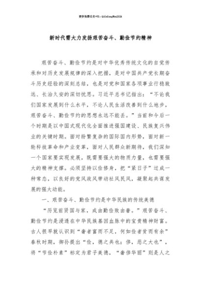 【七哥公文】2025年:【七哥公文】新时代需大力发扬艰苦奋斗、勤俭节约精神+更多免费公文+VX:QiGeGongWen2024+更多免费公文+VX:QiGeGongWen2024