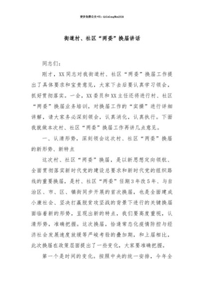 【七哥公文】2025年:【七哥公文】街道村、社区“两委”换届讲话+更多免费公文+VX:QiGeGongWen2024+更多免费公文+VX:QiGeGongWen2024