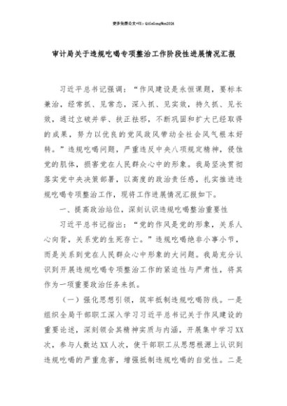 【七哥公文】2025年:【七哥公文】审计局关于违规吃喝专项整治工作阶段性进展情况汇报+更多免费公文+VX:QiGeGongWen2024+更多免费公文+VX:QiGeGongWen2024