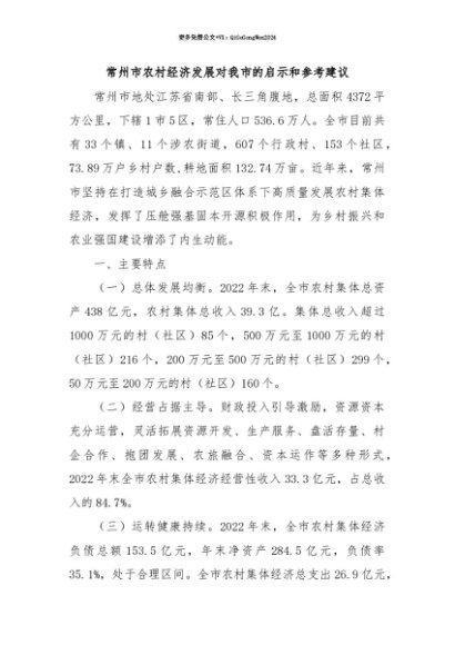 【七哥公文】2025年:【七哥公文】常州市农村经济发展对我市的启示和参考建议+更多免费公文+VX:QiGeGongWen2024+更多免费公文+VX:QiGeGongWen2024
