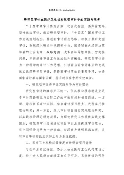 【七哥公文】2025年:【七哥公文】研究型审计在医疗卫生机构运营审计中的实践与思考+更多免费公文+VX:QiGeGongWen2024+更多免费公文+VX:QiGeGongWen2024