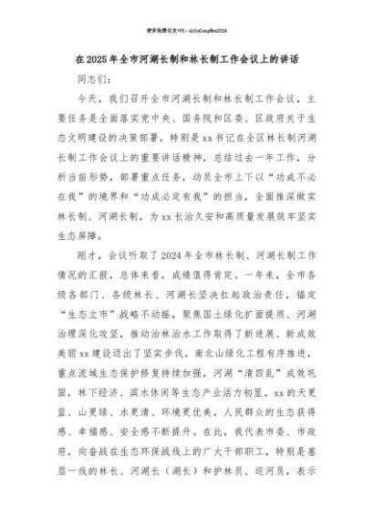 【七哥公文】2025年:【七哥公文】在2025年全市河湖长制和林长制工作会议上的讲话+更多免费公文+VX:QiGeGongWen2024+更多免费公文+VX:QiGeGongWen2024
