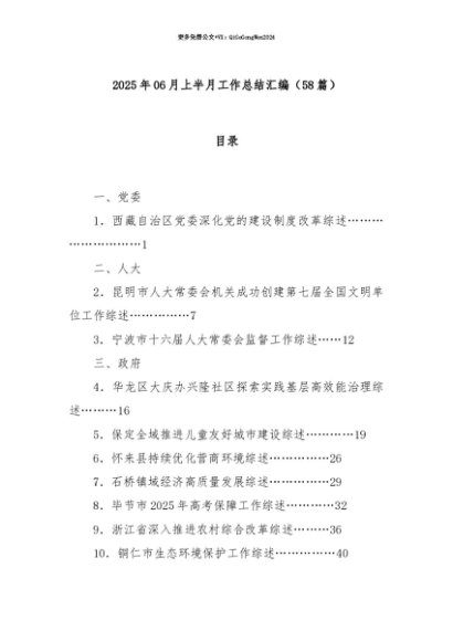 【七哥公文】2025年:【七哥公文】(58篇)2025年06月上半月工作总结汇编+更多免费公文+VX:QiGeGongWen2024+更多免费公文+VX:QiGeGongWen2024