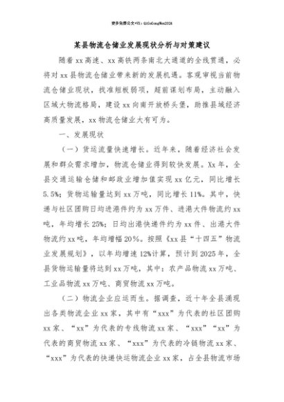 【七哥公文】2025年:【七哥公文】某县物流仓储业发展现状分析与对策建议+更多免费公文+VX:QiGeGongWen2024+更多免费公文+VX:QiGeGongWen2024