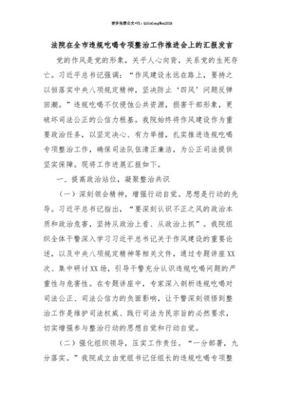 【七哥公文】2025年:【七哥公文】法院在全市违规吃喝专项整治工作推进会上的汇报发言+更多免费公文+VX:QiGeGongWen2024+更多免费公文+VX:QiGeGongWen2024