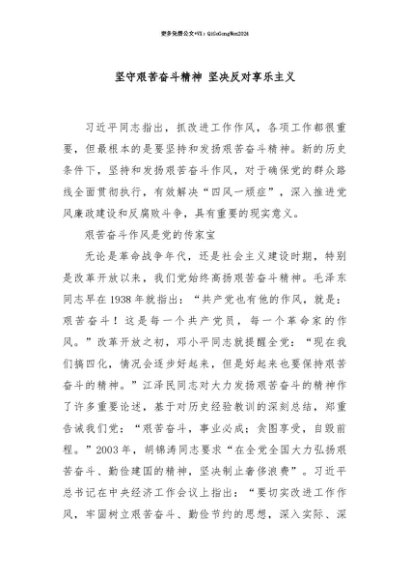 【七哥公文】2025年:【七哥公文】坚守艰苦奋斗精神 坚决反对享乐主义+更多免费公文+VX:QiGeGongWen2024+更多免费公文+VX:QiGeGongWen2024