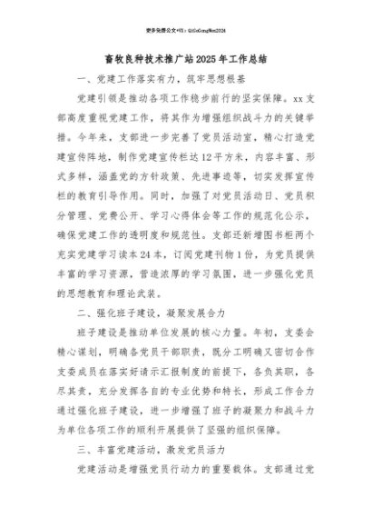 【七哥公文】2025年:【七哥公文】畜牧良种技术推广站2025年工作总结+更多免费公文+VX:QiGeGongWen2024+更多免费公文+VX:QiGeGongWen2024