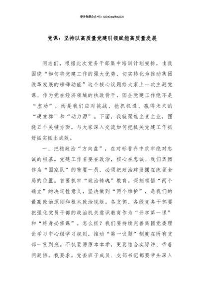 【七哥公文】2025年:【七哥公文】党课:坚持以高质量党建引领赋能高质量发展+更多免费公文+VX:QiGeGongWen2024+更多免费公文+VX:QiGeGongWen2024
