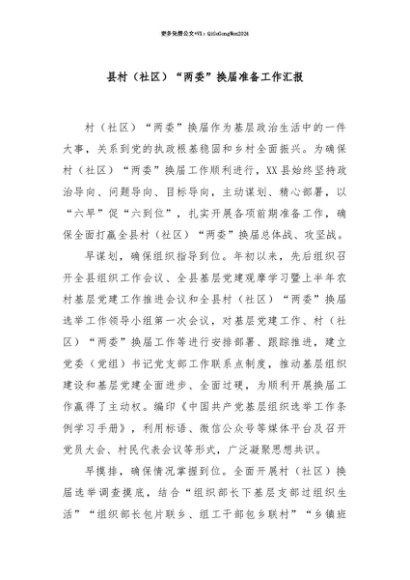 【七哥公文】2025年:【七哥公文】县村(社区)“两委”换届准备工作汇报+更多免费公文+VX:QiGeGongWen2024+更多免费公文+VX:QiGeGongWen2024