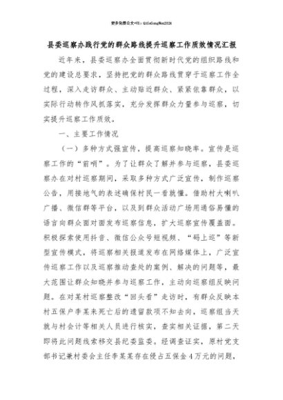 【七哥公文】2025年:【七哥公文】县委巡察办践行党的群众路线提升巡察工作质效情况汇报+更多免费公文+VX:QiGeGongWen2024+更多免费公文+VX:QiGeGongWen2024