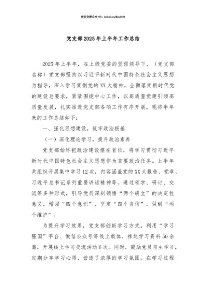 【七哥公文】2025年:【七哥公文】党支部2025年上半年工作总结+更多免费公文+VX:QiGeGongWen2024+更多免费公文+VX:QiGeGongWen2024