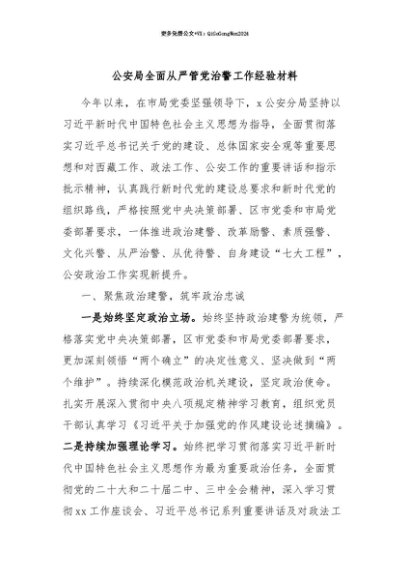 【七哥公文】2025年:【七哥公文】公安局全面从严管党治警工作经验材料+更多免费公文+VX:QiGeGongWen2024+更多免费公文+VX:QiGeGongWen2024